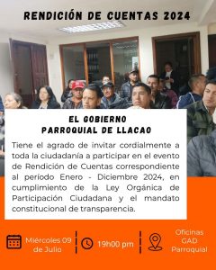 RENDICIÓN DE CUENTAS AÑO 2024 DEL GAD PARROQUIAL DE LLACAO
